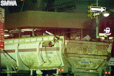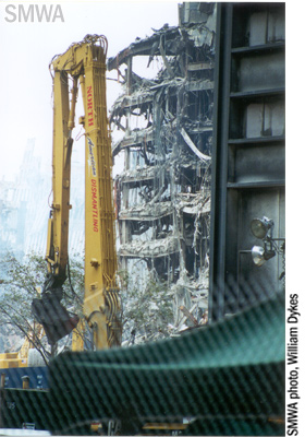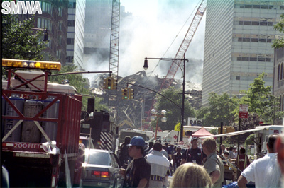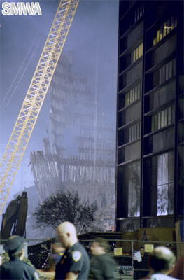 girders. Day and night trucks are leaving Ground Zero with debris. Every