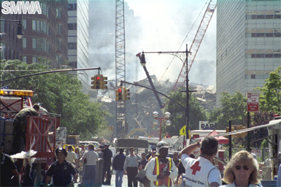 some others at the World Trade Center and were hit with some debris and