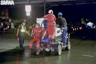 move wreckage in the darkness.